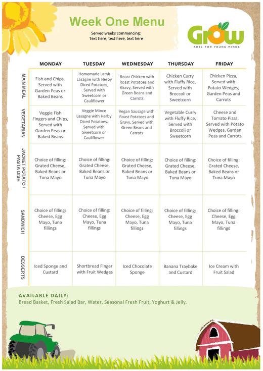 Please see the 3 week rolling menu below, starting Jan 24. A PDF version of the menu can be downloaded below.